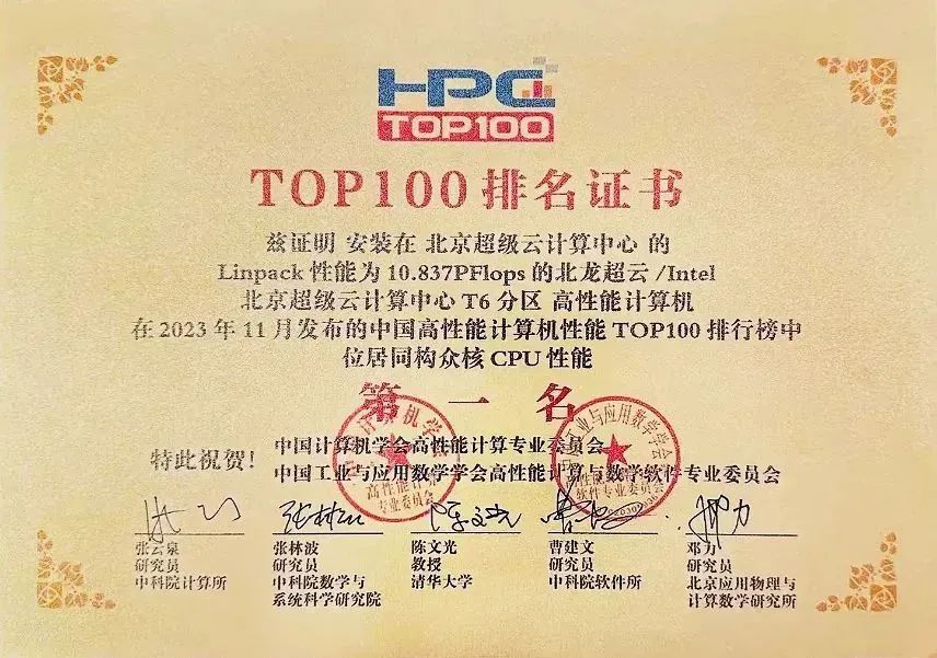 中国HPC TOP100排行榜通用CPU算力性能